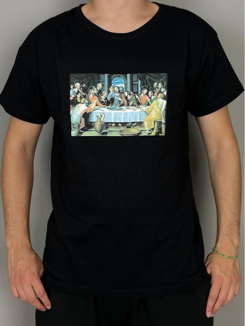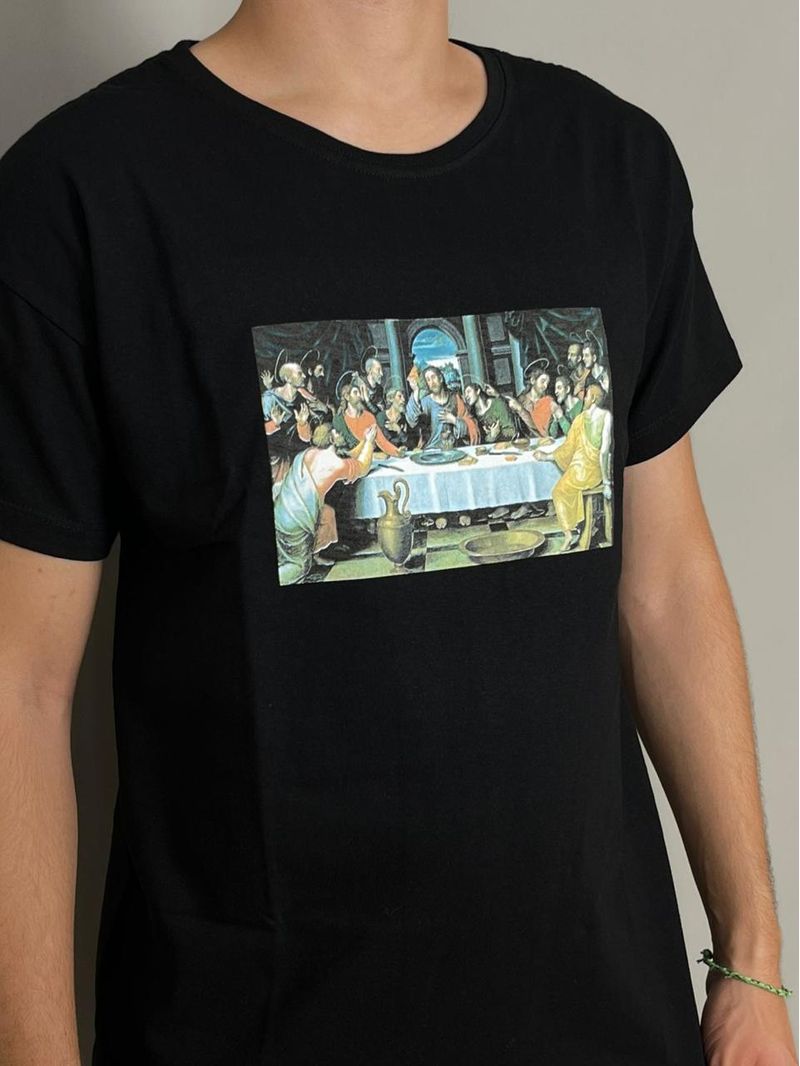 PIZZA T-SHIRT MEN LAST SUPPER NEGRO LARGE